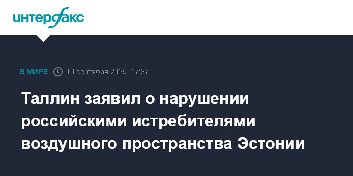 Москва. 19 сентября. INTERFAX.RU - В Эстонии заявили, что три российских истребителя нарушили воздушное пространство республики.