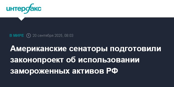 Москва. 20 сентября. INTERFAX.RU - Американские сенаторы республиканец Джим Риш и демократ Шелдон Уайтхаус, к которым присоседились некоторые другие, инициировали законопроект, предусматривающий регулярное выделение Украине средств из замороженных российских активов, сообщил сенатский комитет по международным отношениям.