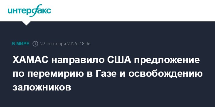 Москва. 22 сентября. INTERFAX.RU - Движение ХАМАС написало письмо президенту США Дональду Трампу с предложением по перемирию в секторе Газа и освобождению заложников, сообщает в понедельник телеканал Fox News со ссылкой на источники.