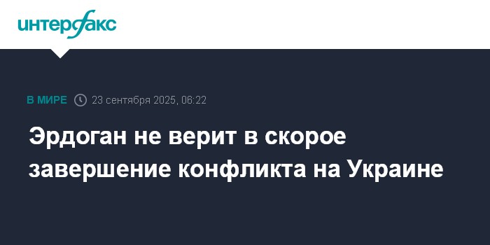 Москва. 23 сентября. INTERFAX.RU - Президент Турции Реджеп Тайип Эрдоган выразил сомнение в скором урегулировании конфликта на Украине.