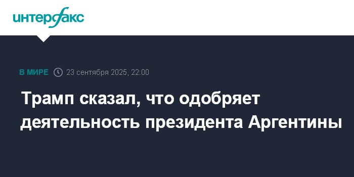 Москва. 23 сентября. INTERFAX.RU - Президент США Дональд Трамп во вторник заявил, что лидер Аргентины Хавьер Милей прекрасно справляется со своей работой и потому должен остаться на президентском посту еще на один срок.