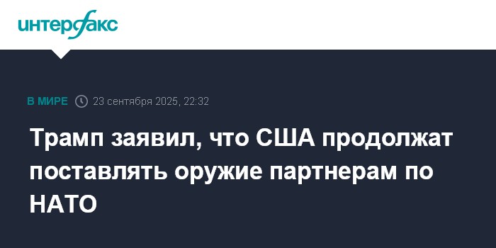"Мы продолжим поставлять оружие НАТО, и страны НАТО могут делать с ним что захотят. Удачи всем!" - написал он в социальной сети Truth Social во вторник.