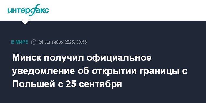 "В Госпогранкомитет поступило официальное уведомление Пограничной стражи Республики Польша об открытии с часа ночи 25 сентября по белорусскому времени закрытых почти две недели назад пунктов пропуска на белорусско-польской границе", - сообщили в ведомстве.
