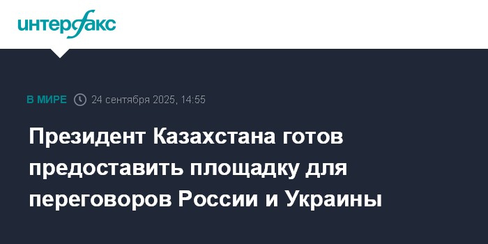 Москва. 24 сентября. INTERFAX.RU - Казахстан выступает за начало прямых переговоров на высшем уровне между Украиной и Россией, готов предоставить для этого площадку, хотя не является посредником, заявил президент республики Касым-Жомарт Токаев.