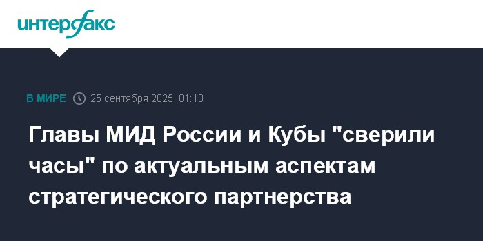 Москва. 25 сентября. INTERFAX.RU - Министры иностранных дел России и Кубы Сергей Лавров и Бруно Родригес обсудили актуальные аспекты стратегического партнерства, констатировали общность подходов по большинству глобальных и региональных вопросов, сообщает МИД РФ в четверг.