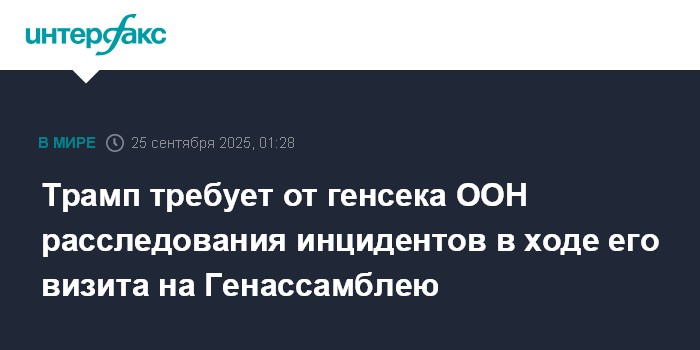 "Я направляю копию этого письма генеральному секретарю и требую немедленного расследования", - написал Трамп в соцсети The Truth Social.