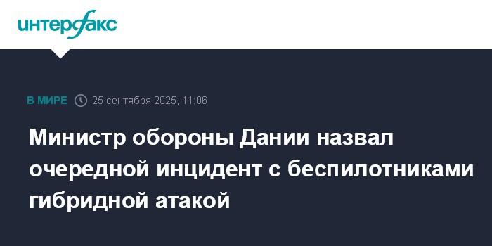 Москва. 25 сентября. INTERFAX.RU - Представители датских властей назвали инциденты с беспилотниками в ночь на четверг над рядом аэропортов страны гибридной атакой, но воздержались от комментариев относительно того, откуда она могла исходить.
