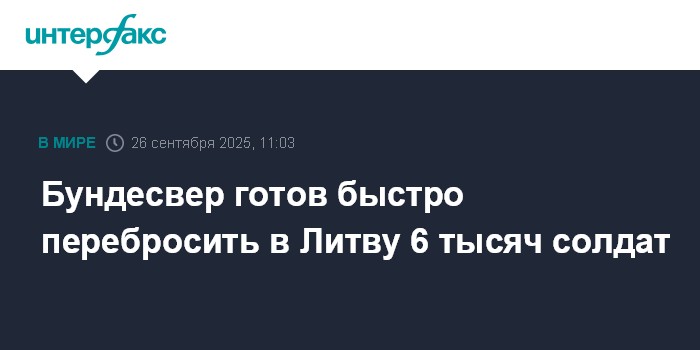 Москва. 26 сентября. INTERFAX.RU - При необходимости 6 тысяч германских солдат с техникой может быть переброшено в Литву в течение нескольких дней, заявил командир 37-й бронетанковой бригады бундесвера бригадный генерал Давид Маркус. Об этом сообщает литовское Минобороны.