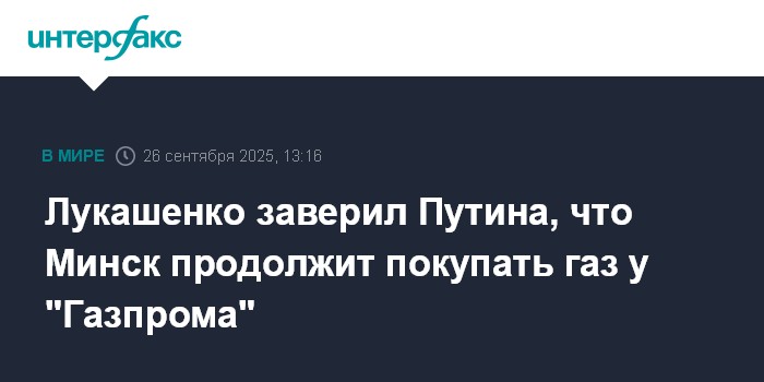 Москва. 26 сентября. INTERFAX.RU - Президент Белоруссии Александр Лукашенко заявил, что Минск планирует закупать у "Газпрома" практически те же объемы газа, что и до строительства АЭС в республике, заверив, что компания "не останется внакладе".