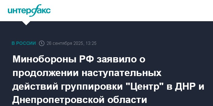 Минобороны РФ заявило о продолжении наступательных действий группировки "Центр" в ДНР и Днепропетровской области