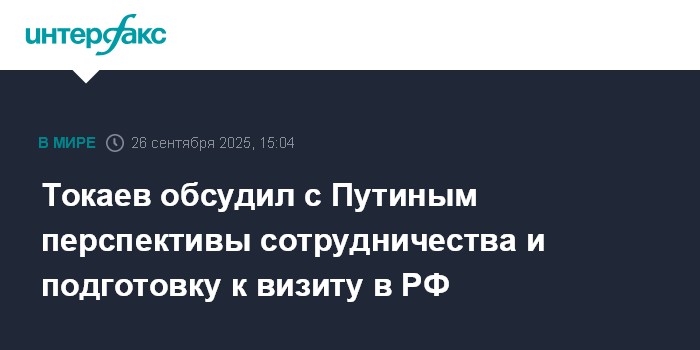 Москва. 26 сентября. INTERFAX.RU - Президент Казахстана Касым-Жомарт Токаев провел телефонный разговор с российским коллегой Владимиром Путиным, сообщает пресс-служба казахстанского лидера.
