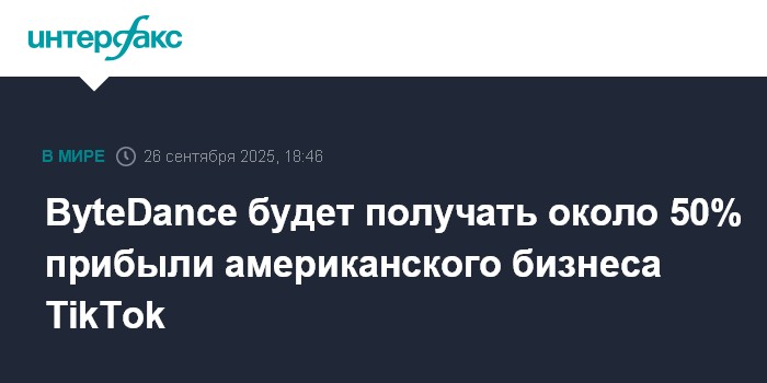 Москва. 26 сентября. INTERFAX.RU - Китайская ByteDance, материнская компания TikTok, скорее всего, будет получать около половины прибыли американского подразделения соцсети даже после продажи мажоритарной доли американским инвесторам, пишет Bloomberg со ссылкой на информированные источники.