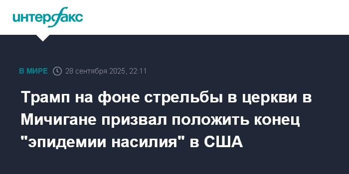 Трамп на фоне стрельбы в церкви в Мичигане призвал положить конец "эпидемии насилия" в США
