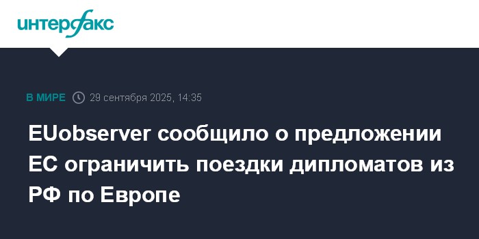 Москва. 29 сентября. INTERFAX.RU - Брюссель предлагает ограничить перемещения российских дипломатов по странам ЕС, такие меры могут стать частью 19-го пакета санкций против РФ, сообщает в понедельник EUobserver со ссылкой на документ.