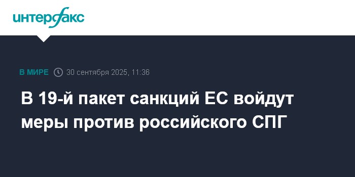 Москва. 30 сентября. INTERFAX.RU -Председатель Еврокомиссии Урсула фон дер Ляйен заявила, что Евросоюз будет усиливать давление на Россию, для чего послужит, в частности, ожидаемый 19-й пакет санкций, включающий меры против российского СПГ.