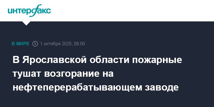 Москва. 1 октября. INTERFAX.RU - Техногенный пожар на территории нефтеперерабатывающего завода в Ярославской области ликвидируют спасатели, сообщил губернатор региона Михаил Евраев.