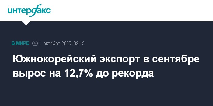 Южнокорейский экспорт в сентябре вырос на 12,7% до рекорда