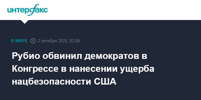 Москва. 2 октября. INTERFAX.RU - Госсекретарь США Марко Рубио заявил, что позиция демократов в Конгрессе привела к приостановке работы правительства (шатдауну), чем нанесла ущерб престижу и безопасности страны.
