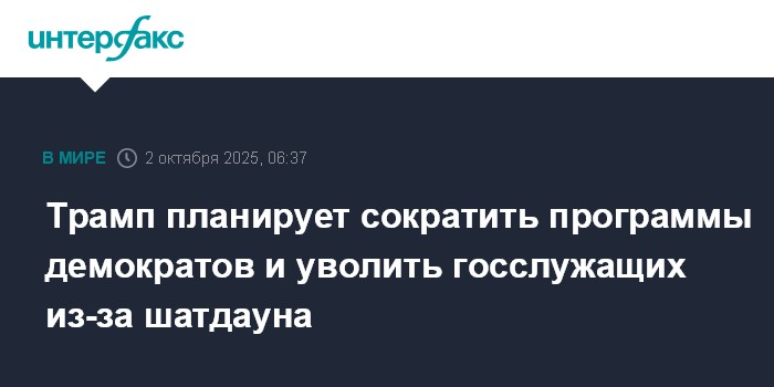 Москва. 2 октября. INTERFAX.RU - Президент США Дональд Трамп заявил, что он не стремился к приостановке работы американского правительства и намерен сократить демократические программы и уволить большое число федеральных служащих.