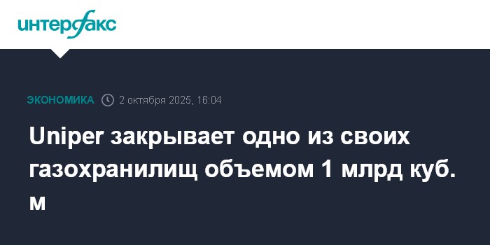 Москва. 2 октября. INTERFAX.RU - Германская компания Uniper запросила разрешение на закрытие подземного газохранилища Брейтбрунн (Breitbrunn), не сумев выполнить в этом сезоне закачки обязательства по его наполнению.
