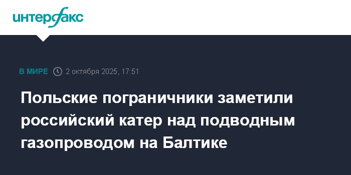 Москва. 2 октября. INTERFAX.RU - Польские морские пограничники отреагировали на появление российского катера в районе, где в Балтийском море пролегает подводный газопровод, сообщила Польскому телевидению представитель польского МВД Каролина Галецкая.