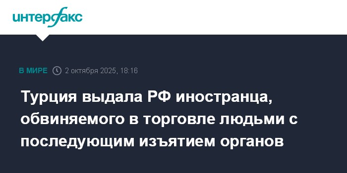 Турция выдала РФ иностранца, обвиняемого в торговле людьми с последующим изъятием органов