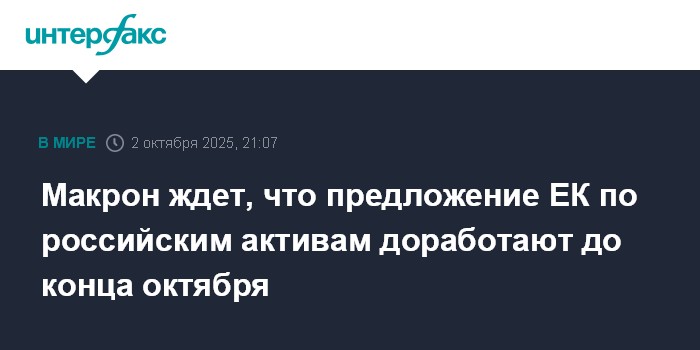 Макрон ждет, что предложение ЕК по российским активам доработают до конца октября