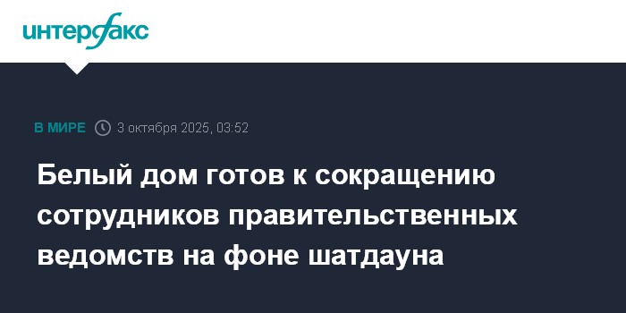 Белый дом готов к сокращению сотрудников правительственных ведомств на фоне шатдауна