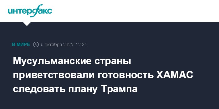 Москва. 5 октября. INTERFAX.RU - Арабские и мусульманские государства приветствовали подход движения ХАМАС к мирному урегулированию в Газе и намерение движения освободить заложников, передает телеканал "Аль-Арабийя".