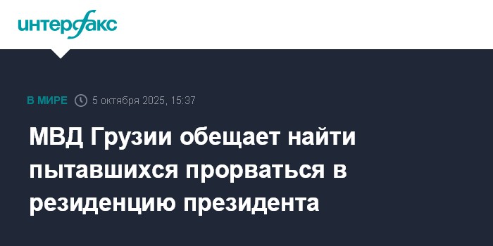 Москва. 5 октября. INTERFAX.RU - Министерство внутренних дел Грузии намерено безотлагательно принять меры для поиска лиц, пытавшихся проникнуть в резиденцию президента страны 4 октября по завершении местных выборов.