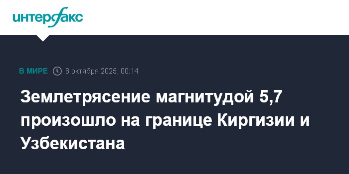 Москва. 6 октября. INTERFAX.RU - На территории Узбекистана зафиксировано землетрясение магнитудой 5,7, его эпицентр находился в Киргизии, сообщает в понедельник центр сейсмопрогностического мониторинга МЧС республики.