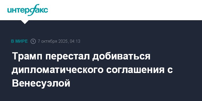 Москва. 7 октября. INTERFAX.RU - Президент США Дональд Трамп прекратил усилия по достижению дипломатического соглашения с Венесуэлой, сообщила The New York Times со ссылкой на источники из числа официальных представителей.