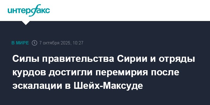 Силы правительства Сирии и отряды курдов достигли перемирия после эскалации в Шейх-Максуде