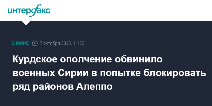 Курдское ополчение обвинило военных Сирии в попытке блокировать ряд районов Алеппо