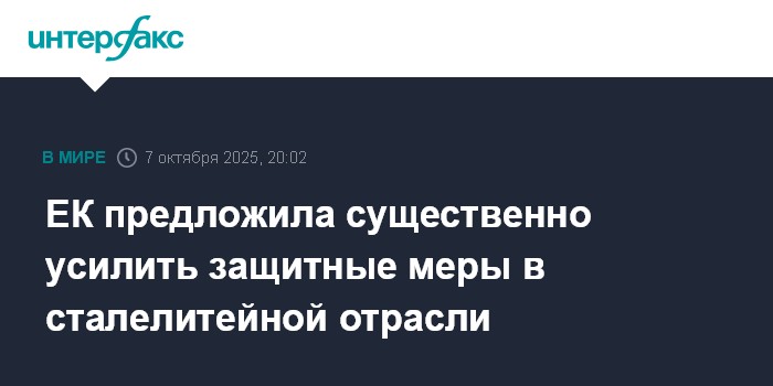 Москва. 7 октября. INTERFAX.RU - Еврокомиссия (ЕК) предложила во вторник план защиты сталелитейной промышленности ЕС от несправедливого воздействия глобального избытка производственных мощностей.