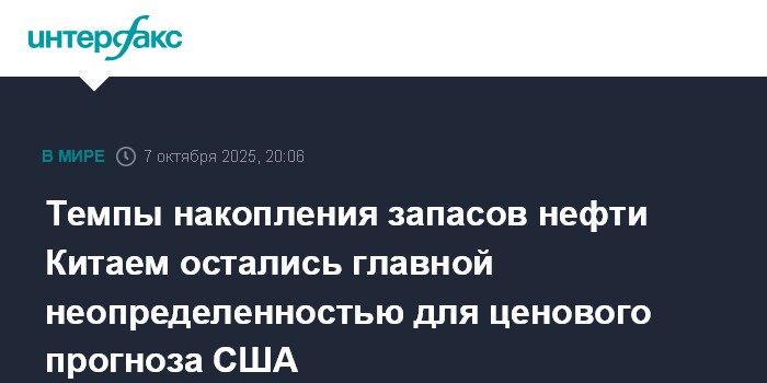 Темпы накопления запасов нефти Китаем остались главной неопределенностью для ценового прогноза США