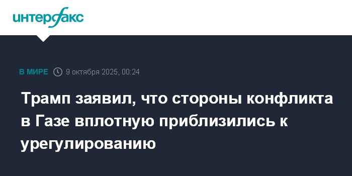 Москва. 9 октября. INTERFAX.RU - Израиль и палестинские группировки из сектора Газа приблизились к решению кризиса, заявил президент США Дональд Трамп.