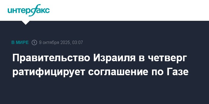 Правительство Израиля в четверг ратифицирует соглашение по Газе