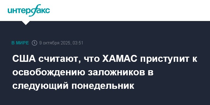 США считают, что ХАМАС приступит к освобождению заложников в следующий понедельник