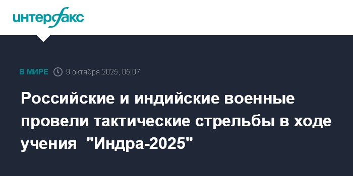 Москва. 9 октября. INTERFAX.RU - На проходящем в Индии российско-индийском учении "Индра-2025" проведены практические занятия на полигоне, сообщили в Минобороны РФ.