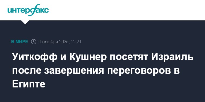 Уиткофф и Кушнер посетят Израиль после завершения переговоров в Египте