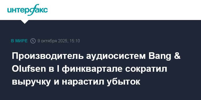 Москва. 9 октября. INTERFAX.RU - Датский производитель премиальных аудиосистем, наушников и другой электроники Bang & Olufsen в первом финансовом квартале сократил выручку на 5% и заметно нарастил убыток, однако подтвердил прогноз на текущий фингод.