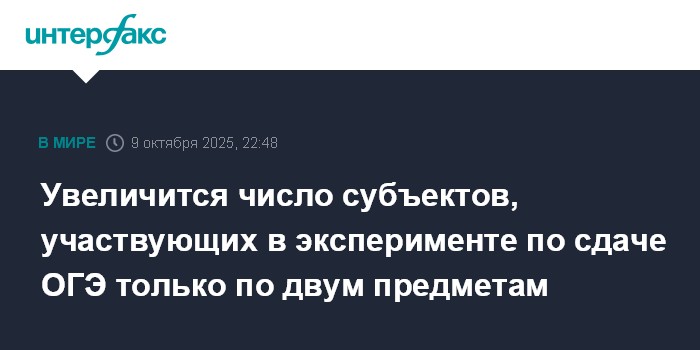 Москва. 9 октября. INTERFAX.RU - Минпросвещения РФ опубликовало проект федерального закона о продлении до 2029 года эксперимента по сдаче Основного государственного экзамена (ОГЭ) только по двум предметам и расширении географии проведения пилота до семи субъектов.