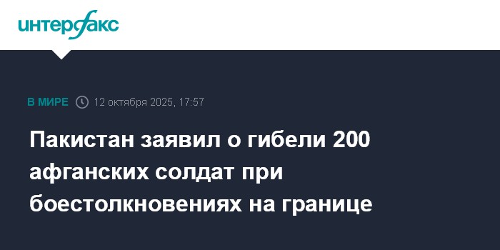 Москва. 12 октября. INTERFAX.RU - В ходе произошедших в ночь на воскресенье боестолкновений на границе между Пакистаном и Афганистаном ликвидировано более 200 талибов, сообщила пакистанская армия, передает агентство Bloomberg.