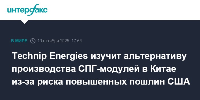 Technip Energies изучит альтернативу производства СПГ-модулей в Китае из-за риска повышенных пошлин США