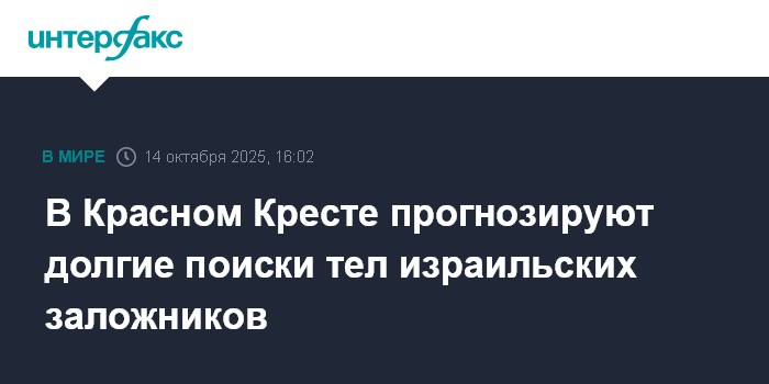 Москва. 14 октября. INTERFAX.RU - Возвращение останков погибших в секторе Газа израильских заложников может быть проблематичным из-за сложностей в их поиске, заявил пресс-секретарь Международного Комитета Красного Креста Кристиан Кардон. Об этом пишет The Times of Israel.