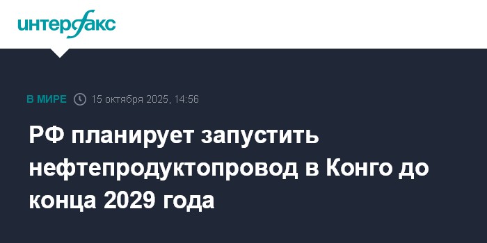 РФ планирует запустить нефтепродуктопровод в Конго до конца 2029 года