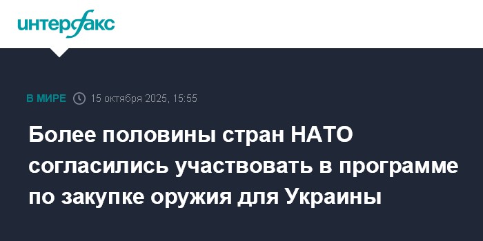 Москва. 15 октября. INTERFAX.RU - Более половины союзников по НАТО согласились принять участие в программе "Перечня приоритетных нужд Украины" (PURL) для передачи стране оружия, заявил в среду генсек альясна Марк Рютте.