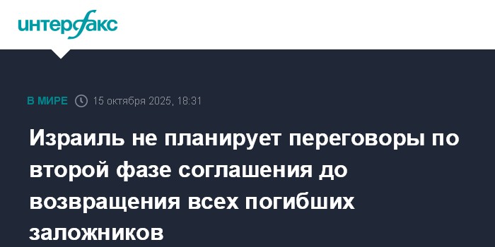 Москва. 15 октября. INTERFAX.RU - Переговоры по реализации второй фазы мирного соглашения по сектору Газа еще не стартовали, и они не начнутся, пока Израиль не получит от движения ХАМАС все тела погибших заложников, сообщает в среду The Jerusalem Post со ссылкой на источники.
