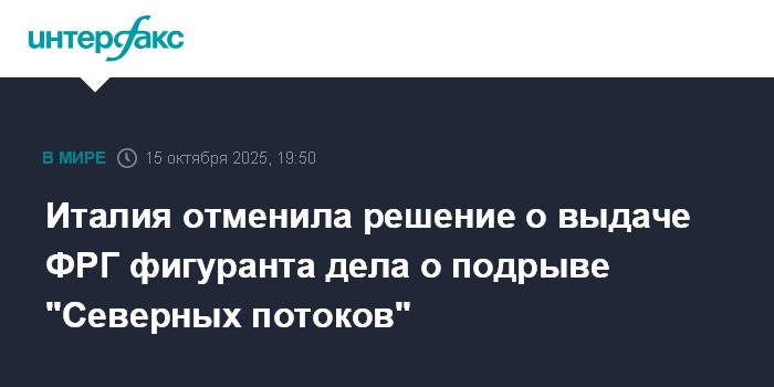 Италия отменила решение о выдаче ФРГ фигуранта дела о подрыве "Северных потоков"